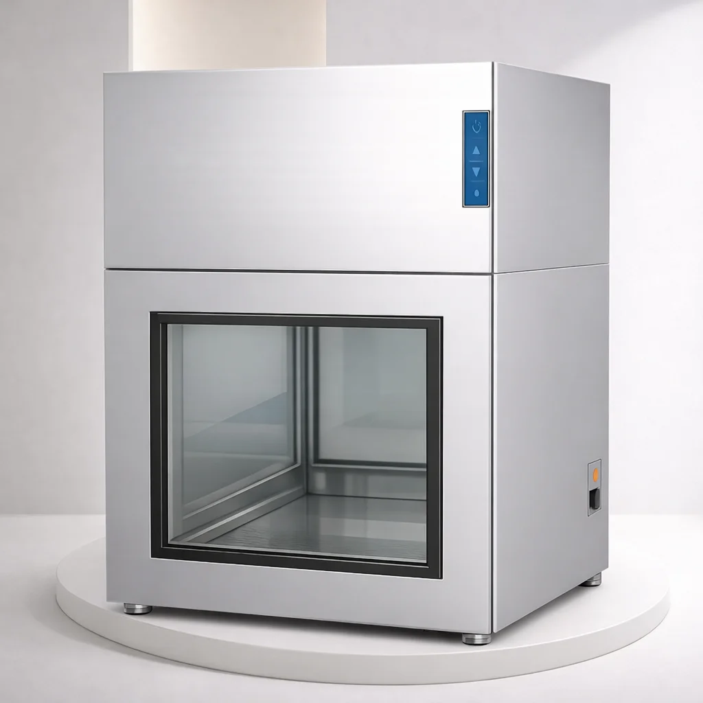 - Fitted with glass viewing window through which material kept in the pass box can be seen.